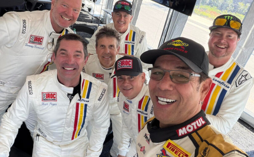 PHOTO: Tomy Drissi joined fellow racing legends (from left) Tommy Kendall, Max Papis, Scott Pruett, Bobby Labonte, Jeff Gordon, and Kurt Busch in IROC competition at the Heritage Invitational at Ten Tenths Motor Club earlier this month.